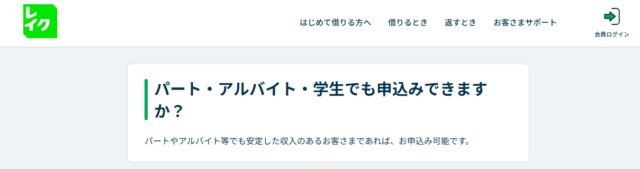 レイク![]() | 1秒診断で 借入可否を事前判断! 詳細はこちら | 満20歳~70歳以下・ 安定収入がある | 最短15秒 ※2 | 電話連絡なし※1 | 非公開 | 365日間※4 |